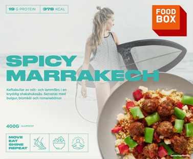Alla Foodbox-rätter innehåller en balanserad mix av protein, naturliga fetter och långsamma kolhydrater, där ungefär en tredjedel av energiinnehållet kommer från respektive näringsämne.